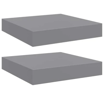 vidaXL Floating Wall Shelves Set of 2 MDF Mounted Display Racks in Grey Ideal for Office, Living Room & Bedroom Decor Assembly Required