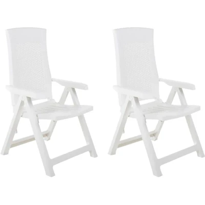 vidaXL Foldable Garden Chairs Set of 2 Weatherproof Plastic in White Adjustable Reclining Backrests Lightweight & Easy to Clean