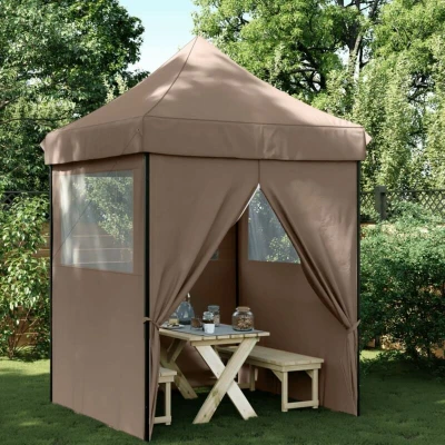 Vidaxl Foldable Party Tent Pop Up with 4 Sidewalls Brown