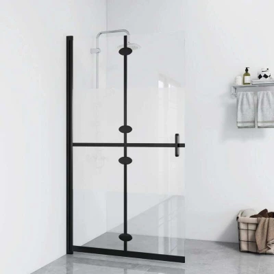General description Bring a fresh appearance of aesthetics to your bathroom with this walk-in shower wall! It offers exquisite styling with premium materials, creating a minimalist shower partition that not only looks great but functions beautifully. The shower screen features 5 mm tempered glass and is supported by an aluminium frame, ensuring a strong structure once mounted. It is extremely practical and convenient as you can open it when needed and fold it up to save space when not in use. Additionally, the shower partition is easy to clean; simply wipe away those annoying water stains! Technical specifications Frame colour: Black Material: Aluminium, tempered glass Size: 80 x 190 cm (W x H) Glass thickness: 5 mm Designed with half frosted glass With 4 panels With double handles Foldable Space saving when not in use Reversible fitting - free choice of left or right mounted Installation fittings included Assembly required: Yes Other information Children should be supervised to