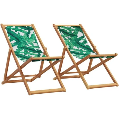 vidaXL Folding Beach Chairs 2 pcs Leaf Pattern Fabric and Solid Wood