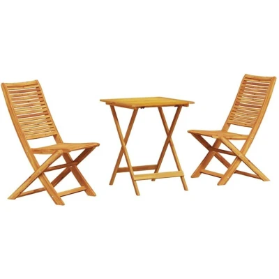 vidaXL Folding Bistro Set 3 pcs Brown Solid Acacia wood, Wood Set, Rustic Outdoor Furniture, Compact Dining Collection, Foldable Terrace Chairs, UV Resistant Seating