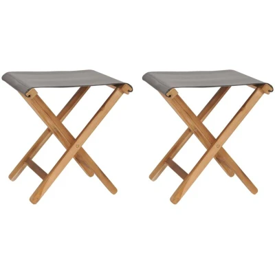 General description This wooden folding chair features a striking design that adds a touch of rustic charm to your garden or patio. Constructed from extremely durable teak hardwood, this piece has been seasoned, kiln dried, and fine sanded for a smooth appearance. Teak wood is known for its exceptional strength and weather resistance, making it an ideal choice for long-lasting garden furniture. The fabric seat enhances seating comfort, and the chair can be easily folded for storage when not in use. Technical specifications Fabric colour: Dark grey Material: Fine sanded teak hardwood with water-based finish, fabric (100% polyester) Dimensions: 38 x 38 x 46 cm (W x D x H) Maximum weight capacity: 110 kg per seat Assembly required: Yes Delivery contains: 2 x Folding chair Other information