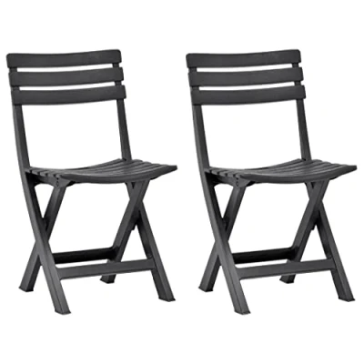 vidaXL Folding Garden Patio Chairs Set of 2, Durable Lightweight Plastic, All Weather Resistant, Easy Maintenance, Anthracite Color