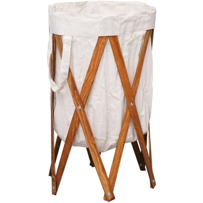 vidaXL Folding Laundry Basket Cream Wood and Fabric