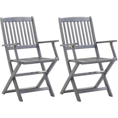 vidaXL Folding Outdoor Chairs Set of 2, Solid Acacia Wood, Grey Wash, Al Fresco Dining, Easy Assembly & Cleaning, Space saving Design’