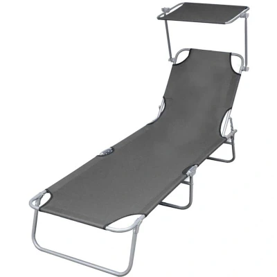 vidaXL Folding Sun Lounger with Canopy Steel Grey