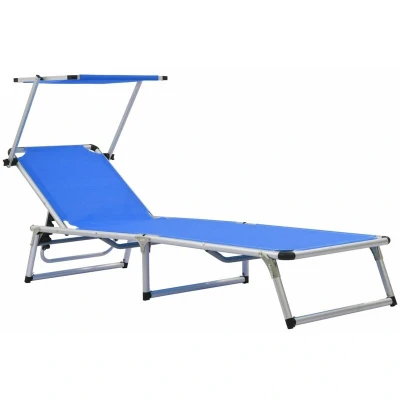 vidaXL Folding Sun Lounger with Roof Aluminium and Textilene Blue