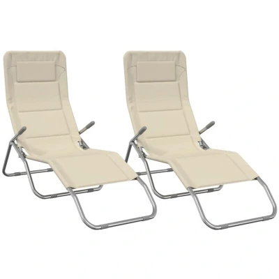 vidaXL Folding Sun Loungers 2 pcs Cream Textilene&Powder coated Steel