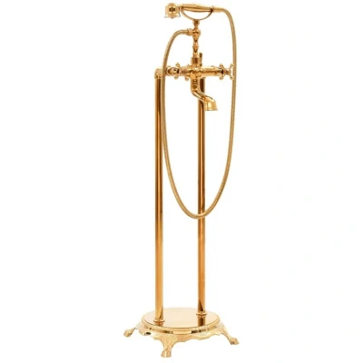 General description Enjoy the modern styling and functionality of the premium freestanding bathtub faucet! It will be the ideal solution for a luxurious bathing experience. The sleek design, clean lines, and shimmering look make it blend into your bathroom decor perfectly. Technical specifications Colour: Gold Material: Stainless steel (hose), brass (down pipe), and ABS (hand shower) Chrome-plated Tap height: 99.5 cm Hose length of hand shower: 150 cm Hose connection: G 1/2" Free standing Installation The bathtub tap requires assembly; mounting materials are included in the delivery. Other information