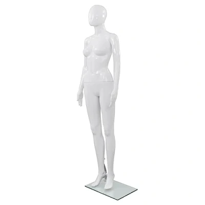 vidaXL Full Body Female Mannequin with Movable Arms and Glass Base Polypropylene Constructed Display Model Glossy White Ideal for Shop Window Outfits, Wigs Shoes