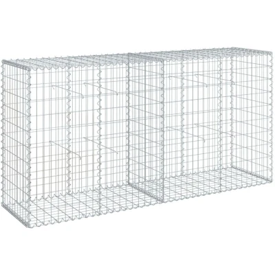 vidaXL Gabion Basket with Cover Galvanised Iron 200x50x100 cm Sturdy Outdoor Decor, Functional Structures & Retaining Walls