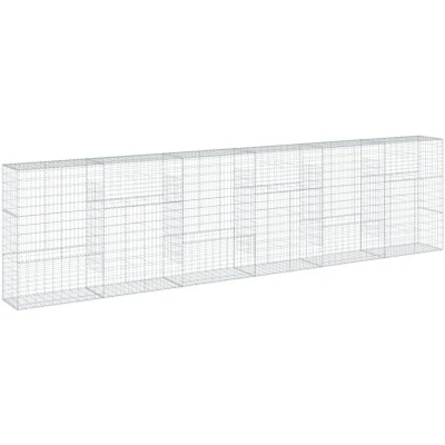 vidaXL Gabion Basket with Cover Galvanised Iron/Stainless Iron Wire 600x50x150 cm Ideal for Landscaping, Retaining Walls, Outdoor Decor