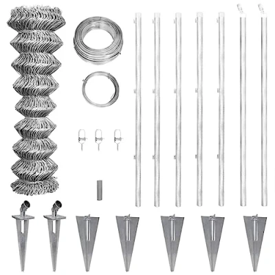 VidaXLThis galvanised chain-link fence will provide an excellent barrier for gardens, parks, zoos, sports yards, roads and pools. This chain-link fence is made of high quality galvanised steel for strength and durability. Our weather-proof and corrosion-resistant fence set will protect your garden or patio from unwanted guests. Thanks to the included galvanised anchor spikes for the posts, it's very easy to install. All necessary mounting accessories are included in the package! Delivery includes 1 galvanised chain-link fence, 5 galvanised fence posts, 5 galvanised anchor spikes for the fence posts, 2 galvanised diagonal posts, 2 galvanised anchor spikes for the diagonal posts, 1 top wire, 1 binding wire and 3 wire tensioners.