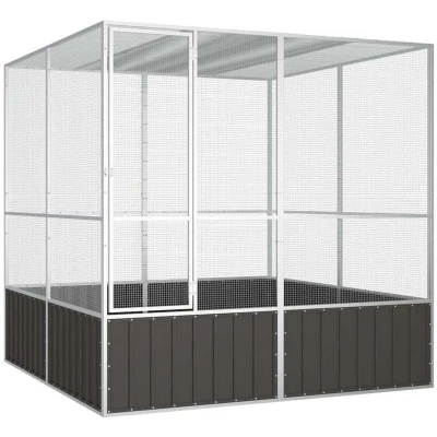 ManoManoGeneral description This bird cage provides a large, cosy place for your birds to fly and play safely. The versatile cage features multiple uses: playing, exercising, training, or simply keeping your birds safe. It will be the perfect play paradise for your birds! Technical specifications Colour: Anthracite Material: Galvanised steel Dimensions: 213.5 x 217.5 x 211.5 cm (W x D x H) Gate size: 48 x 152.5 cm (W x H) Mesh size: 12.7 x 12.7 mm SKU: 171549 Installation Each product comes with an assembly manual in the box for easy assembly. Usage To prevent damage from heavy snow buildup, we recommend clearing the roof regularly during winter. Other information
