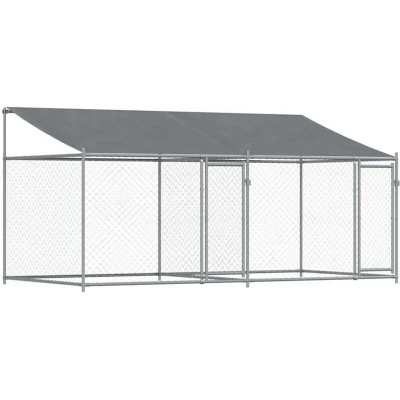 vidaXL Galvanised Steel Dog Kennel with Roof Grey Outdoor Cage, Lockable Doors, Sturdy Metal Crate 4x2x2m for Exercise/Play