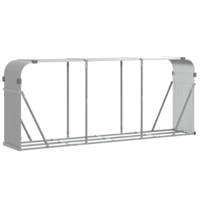 vidaXL Galvanised Steel Firewood Rack Light Grey Log Holder for Fireplace/Wood Stove, Outdoor Wood Storage Solution, Spacious and Weatherproof