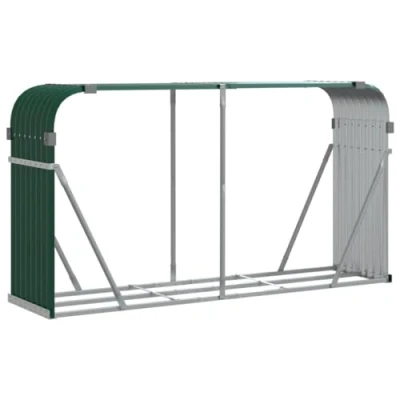 vidaXL Galvanised Steel Log Holder Firewood Rack Green, Durable Outdoor Wood Storage Stand, 180x45x100 cm with Stability Hooks