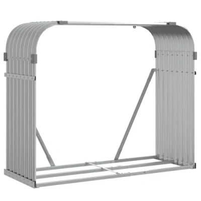 vidaXL Galvanised Steel Log Holder Firewood Rack Light Grey, Ample Space, Ventilated, Secure, for Gardens/Patios/Outdoor