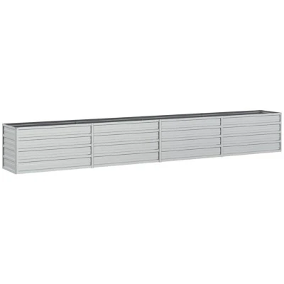 vidaXL Galvanized Steel Raised Garden Bed 320x40x45 cm Silver Rectangular Plant Container for Outdoor, Patio, Balcony Decor Metallic Grey Finish