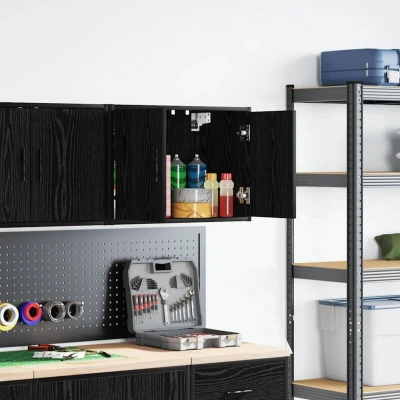 vidaXL garage wall cabinet black engineered wood cupboard with ample storage space for tools and accessories organized, durable, versatile mount garages, utility rooms, workshops