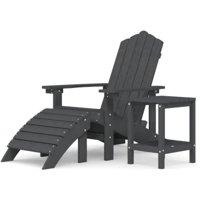 vidaXL Garden Adirondack Chair with Footstool & Table HDPE Anthracite