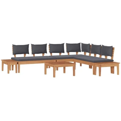 This Modern Garden Sofa Set is a perfect addition to your garden and terrace, offering functionality intertwined with an aesthetically pleasing design. Characterized by its simplicity and clean lines, this outdoor furniture set provides a serene seating area that anyone can appreciate. Whether you're hosting a summer gathering or simply relaxing on a sunny afternoon, this set delivers a comfortable and stylish experience for all. The teak wood frame adds a touch of elegance, while the plush cushions invite you to unwind and soak up the sun. Its versatile nature makes it suitable for a wide range of outdoor spaces, enhancing the beauty and enjoyment of your home environments with a modern flair. Quality Materials The set is crafted with solid teak wood, providing a robust and reliable construction for outdoor use. The inclusion of polyester fabric in the cushions ensures a soft touch and comfort while maintaining resistance to external weather elements. This combination enhances the set's longevity and consistent performance. Included Components The sofa set consists of detailed components, including plush foam-filled cushions for maximum comfort. It features a solid surface made of teak and decorative pillows covered in polyester, completing the lounging experience by accommodating different body types and providing ergonomic support. Modern Features The sofa set integrates manually adjustable mechanisms, allowing users to customize their seating layout according to preference. This functionality adds a personalized touch to the sitting experience, adapting well to different environments and individual needs. Versatile Outdoor Use Perfectly designed for garden and terrace spaces, this furniture set complements sunny outdoor days. It promotes relaxation and social gatherings, making it a versatile choice for hosting family and friends in style. Care &Maintenance Easy to maintain with its durable materials, this sofa set only requires a wipe-down with a damp cloth to keep it clean. During off-seasons or inclement weather, it's advised to use a cover to prolong its lifespan and ensure it remains a staple in your outdoor setting.