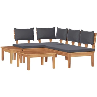 vidaXL Garden Bench Set with Cushion 4 pcs brown Dark gray Wood