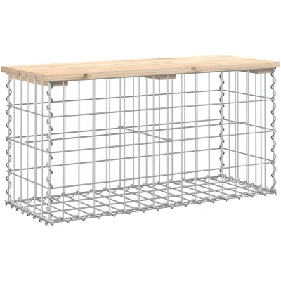 ManoManoGeneral description Create your own outdoor seating space with this garden bench! This garden bench will be a real eye-catcher in your outdoor living space. Technical specifications Board material: Solid pine wood (untreated) Gabion basket material: Galvanised steel Overall dimensions: 83 x 31.5 x 42 cm (W x D x H) Gabion basket dimensions: 80 x 30 x 40 cm (W x D x H) Max. load capacity: 110 kg Assembly required: Yes Cushion included: No Usage This park bench is suitable for gardens, backyards, patio spaces, secret corner locations, and more. Other information To make sure your outdoor furniture stays beautiful, we recommend protecting it with a waterproof cover.