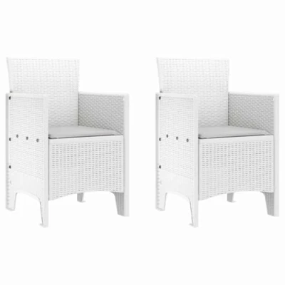 ManoManoGeneral description This handy Garden Chair set is designed to enhance your outdoor spaces with a modern aesthetic and practical features. With clean lines and a fuss-free design, these chairs seamlessly fit into gardens and terraces. They are UV resistant and waterproof, making them ideal for outdoor relaxation. The durable polypropylene construction ensures strength, while the rattan-style finish adds an elegant touch, perfect for enjoying laid-back moments and social gatherings. Technical specifications Material: Polypropylene Colour: White Overall dimensions: 53 x 49 x 85 cm (L x W x H) Seat depth: 45 cm Max weight capacity: 110 kg Assembly required: Yes Delivery contains: 2 x Garden chairs EAN: 8721288583062 SKU: 847460 Other information