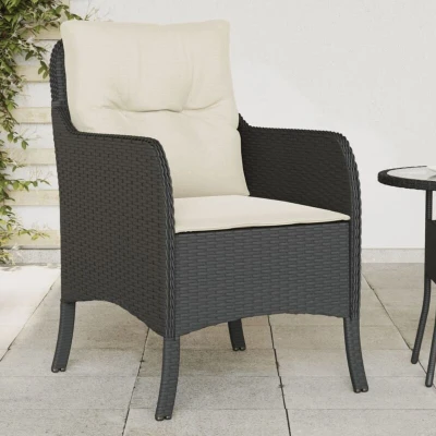 vidaXL Garden Chairs with Cushions 2 pcs Black Poly Rattan