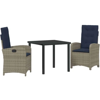 vidaXL Garden Dining Set 3 pcs Grey Poly Rattan