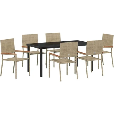 vidaXL Garden Dining Set 7 pcs Beige Poly rattan