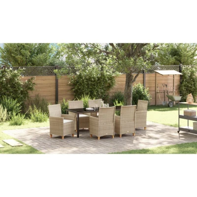 vidaXL Garden Dining Set 7 pcs Beige Poly Rattan