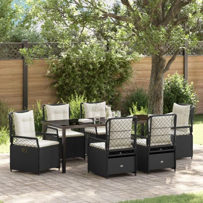 vidaXL Garden Dining Set 7 pcs Black Poly Rattan
