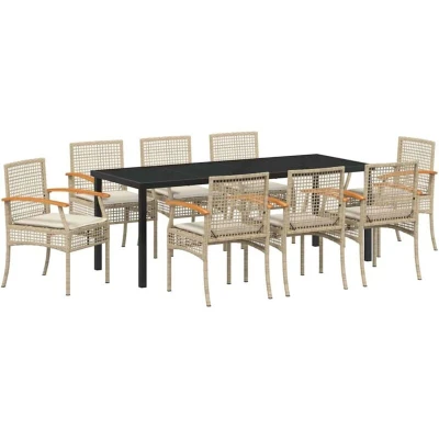 vidaXL Garden Dining Set 9 pcs Beige Poly Rattan