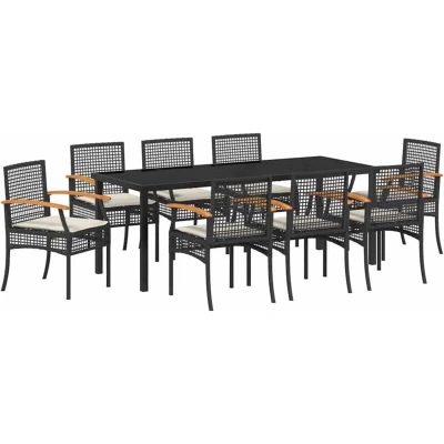 vidaXL Garden Dining Set 9 pcs Black Poly Rattan