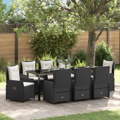 vidaXL Garden Dining Set 9 pcs Black Poly Rattan
