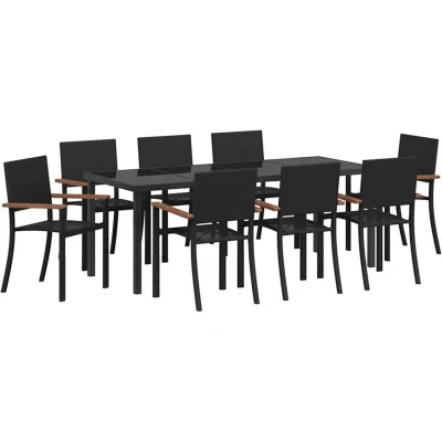 vidaXL Garden Dining Set 9 pcs Black Powder Coated Steel