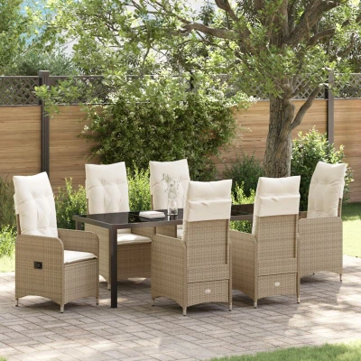 vidaXL Garden Dining Set with Cushion 7 pcs Beige Poly Rattan