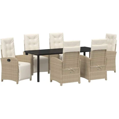 vidaXL Garden Dining Set with Cushion 7 pcs Beige Poly Rattan