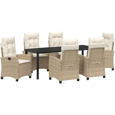 vidaXL Garden Dining Set with Cushion 7 pcs Beige Poly Rattan