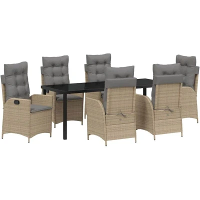 vidaXL Garden Dining Set with Cushion 7 pcs Beige Poly Rattan
