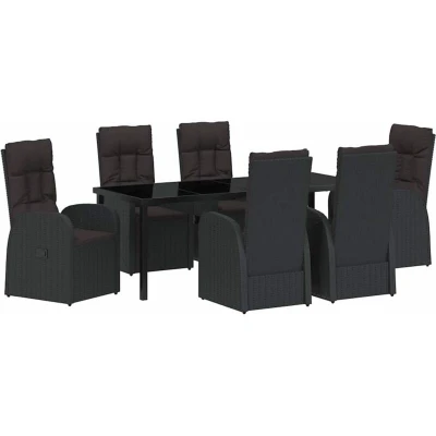 vidaXL Garden Dining Set with Cushion 7 pcs Black Poly Rattan