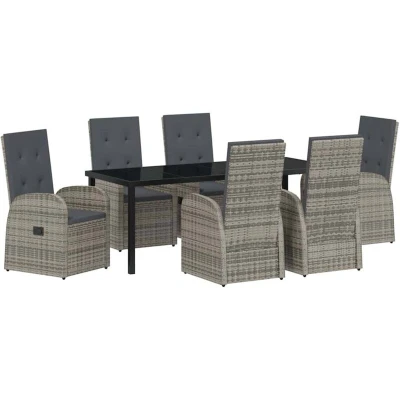 vidaXL Garden Dining Set with Cushion 7 pcs Grey Poly Rattan