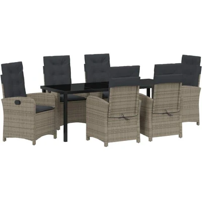 vidaXL Garden Dining Set with Cushion 7 pcs Grey Poly Rattan