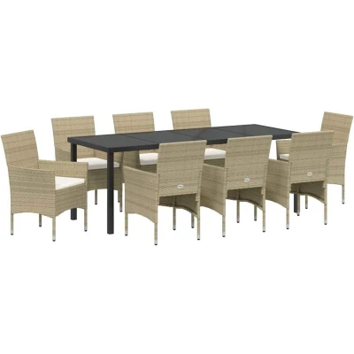 vidaXL Garden Dining Set with Cushion 9 pcs Beige Poly Rattan