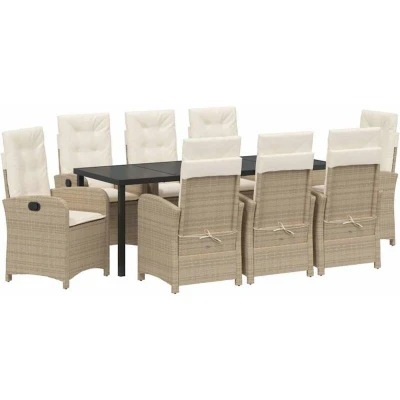vidaXL Garden Dining Set with Cushion 9 pcs Beige Poly Rattan