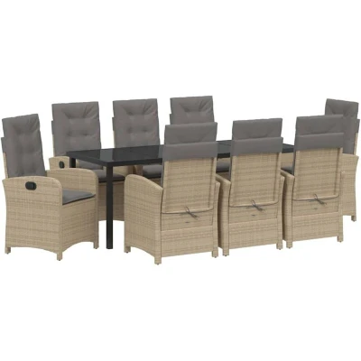 vidaXL Garden Dining Set with Cushion 9 pcs Beige Poly Rattan