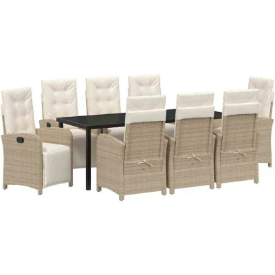 vidaXL Garden Dining Set with Cushion 9 pcs Beige Poly Rattan
